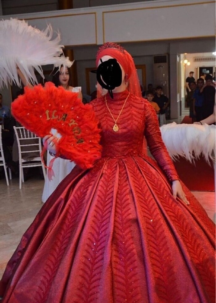 Sadece 1 kez giyildi dolapta bekliyor çok şık ağır duran bir elbise alana giyenede uğur getirsin ♥️ Arkası ipli 38-40 bedene uygun TAÇ-KÜPE-DUVAK yanında verilecektir.
