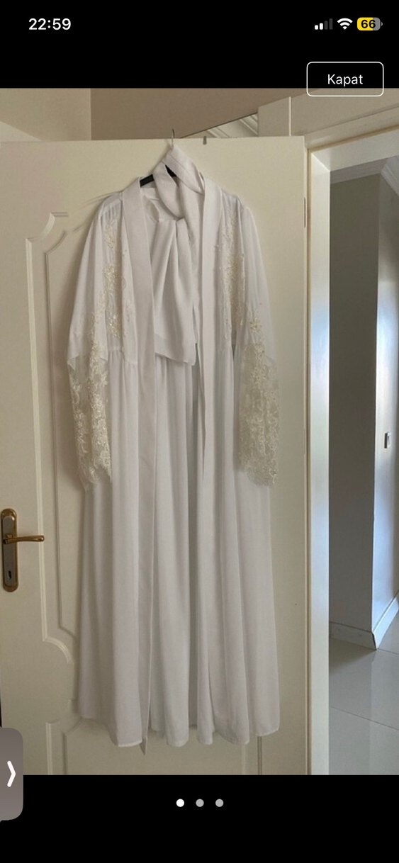 Komple set olarak gönderim olacaktır iç elbisesi giyilince kollar kapanır şal dahil bel kısmı lastikli olduğu için beden çok rahat olur 1.62 boy 73 kiloyla giydim sonrasında Mevlüt içinde kullanıma uygundur işlemeleri sadece kol ve yaka kısmındadır iç kısmı ve şalı düz işlemesidir
