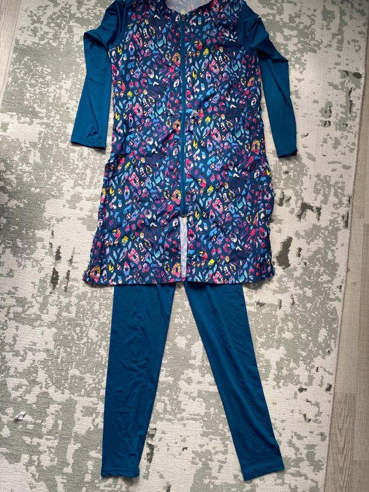 Kadınlar için uzun kesim, renkli batik desenli ve fermuarlı haşema