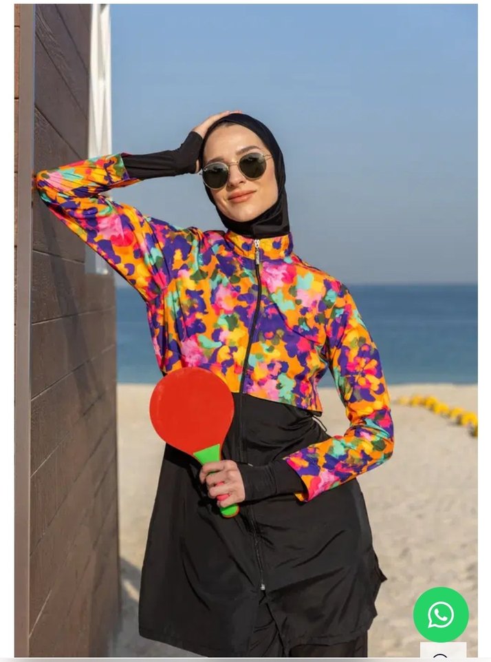 Üst, Tayt, Eşarp, Bone, Tek parça iç çamaşırı olmak üzere 5 parçadan oluşmaktadır. Hızlı kuruma, kolay yüzme olanağı sağlar. S, M, L, XL, XXL, 3XL bedenleri bulunmaktadır. Su itici apreli. Üst desenli. Crop görünümlü. Önü fermuar kapamalı. Dik yaka. Uzun kollu. Likra pantolon. Likra eşarp ve bone. Tek parça iç çamaşır. Farklı renk ve çeşitleri gardobumda mevcuttur. #tesettürmayo #haşema #mayo