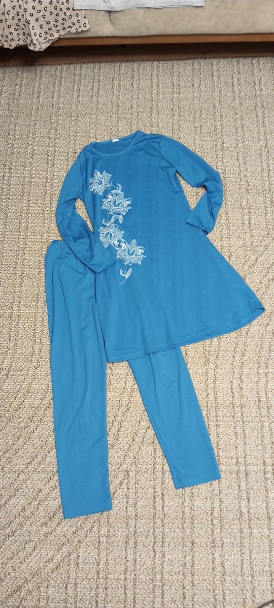 Diger markasına ait, mavi renkte, renkli nakışlı çiçek desenli, alt üst tesettür mayo 2 parçalı ekstra hediye ekledim 4 parça fiyatı