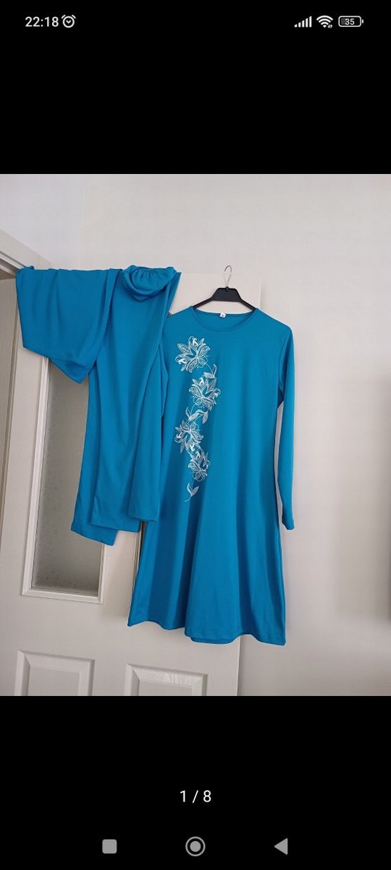 Mavi renkli, uzun kollu,sorunsuz haşema hiç kullanılmamış