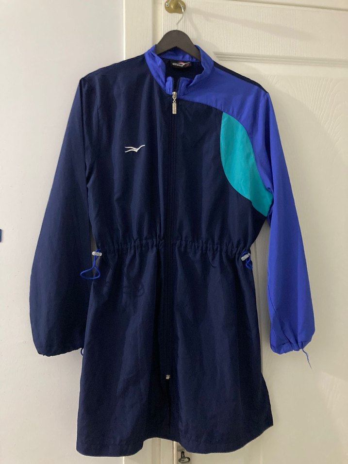 Hemen kuruyan bi kumaşa sahip dir Pantolon boy 96 cm Üst boy 89 cm Beden M beden İki omuz 24 cm Bel esnek daraltılabiliyor Yırttık ve doferme yoktur iyi durumda 3,4 defa anca giyildi