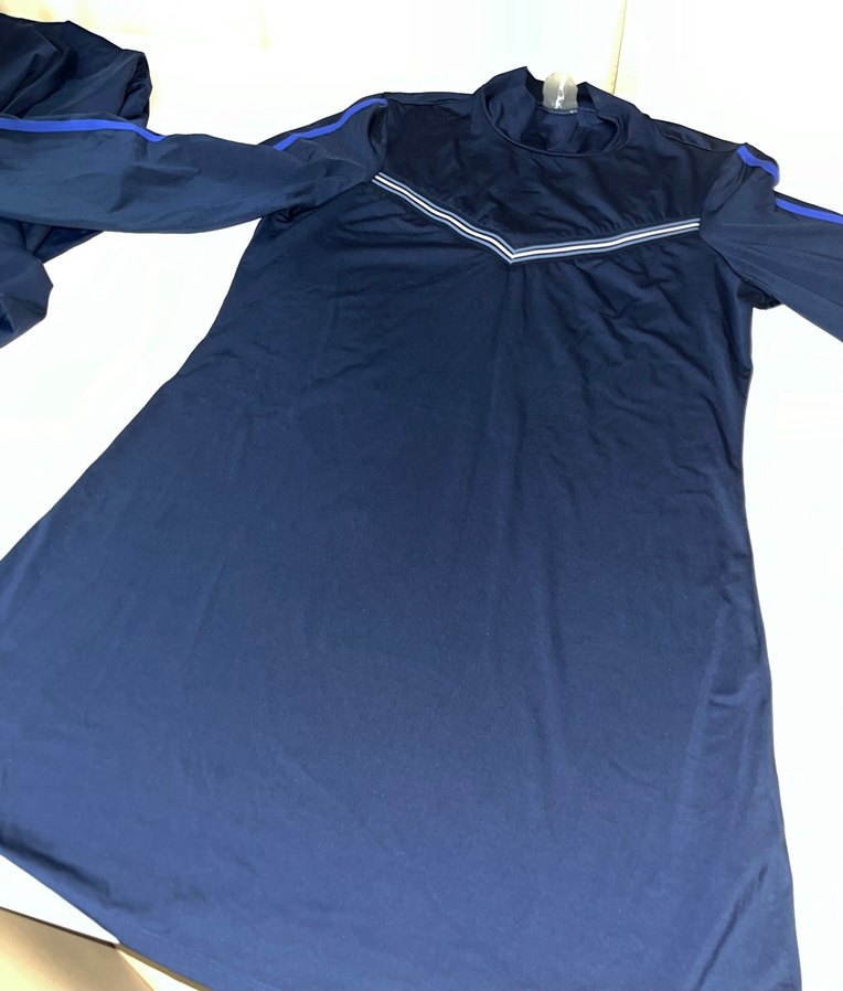 Tesettür mayo. Çok az kullanıldı. Defosu yoktur. Dalgıç kumaştır. Üstü dize kadar. Altı düz paçadır tayt değildir. Kullanımı rahat.