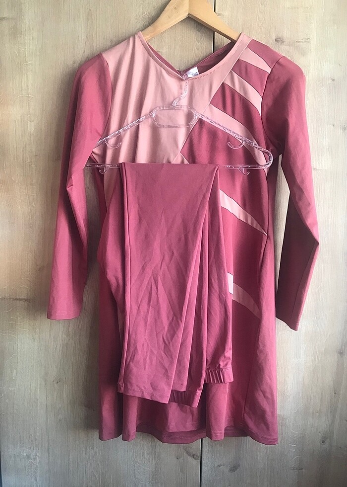 Tesettür mayo. İkili takım. Sayılı giyilmiştir. Tertemiz kusursuzdur. Ölçüleri fotolarda mevcut. Nar çiçeği tonlarında pastel renk. Başka bir modeli kullandığım için satıştadır.