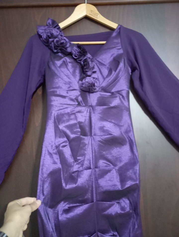 Düğün Nişan Tesettür Abiye Mor renkli, kolları şifon balık kesim model 36-38 beden uyumlu şık duruşlu.✨