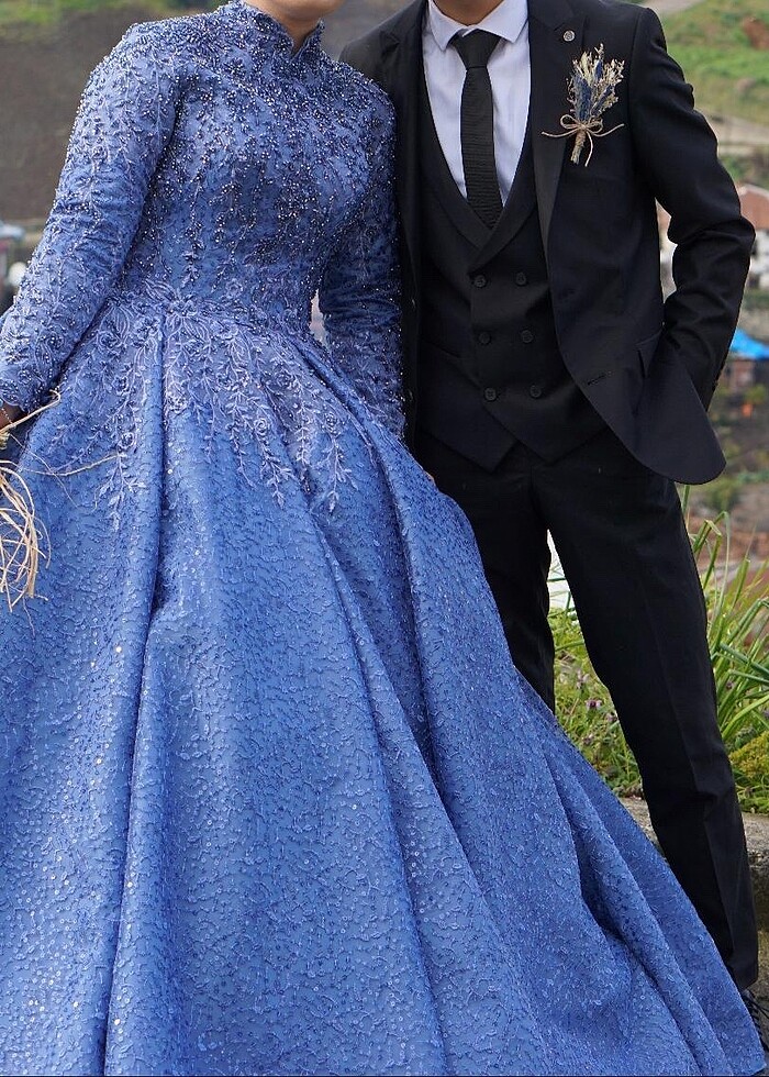 Ürün özel dikim olup hiçbir sorunu yoktur.36-38 bedene uyumlu arkasında açılma payı 44 bedene kadar rahatlıkla olur. Rengi indigo mavisi. Ürün salonda 1 kez kullanıldığı için etek dibinde hiç bir hasar yoktur. Kuru temizleme yapılmıştır. Kıyafet poşeti ile gönderilecektir. İki kol arası:46 cm Kol genişliği:21 cm Omuzdan omuza: 40 cm Boyu:178 cm