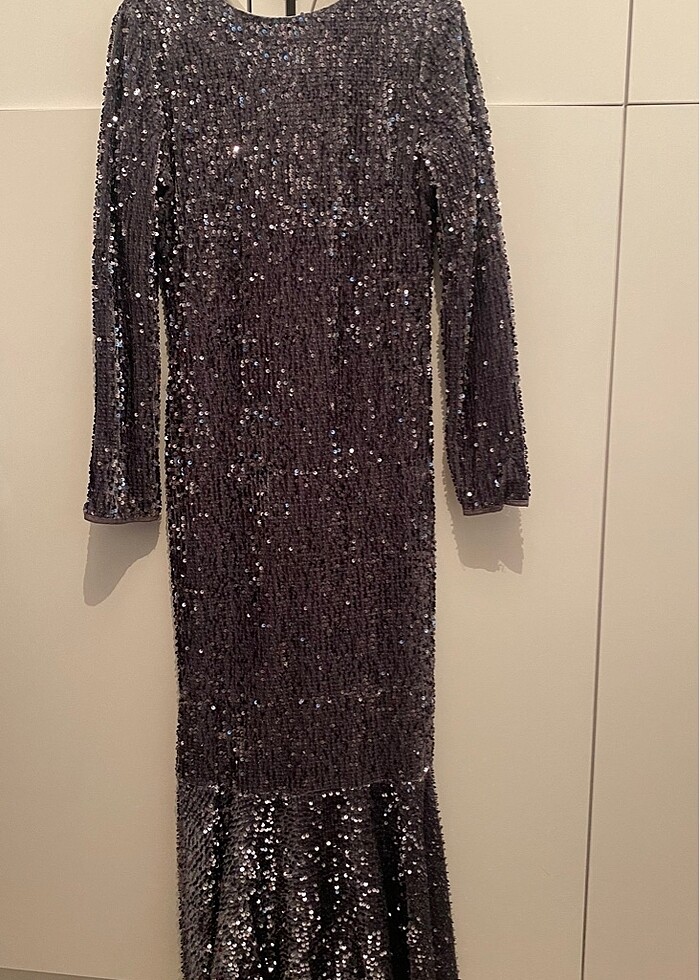 Gri payetli tesettür balık abiye