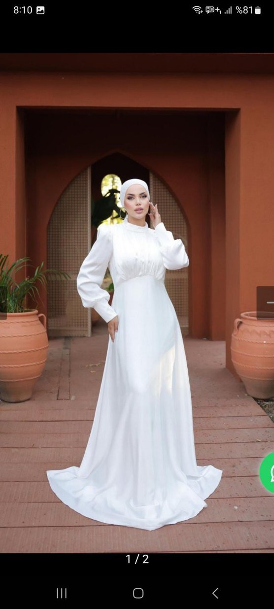 tesettür saten beyaz abiye elbise nikah söz nişan