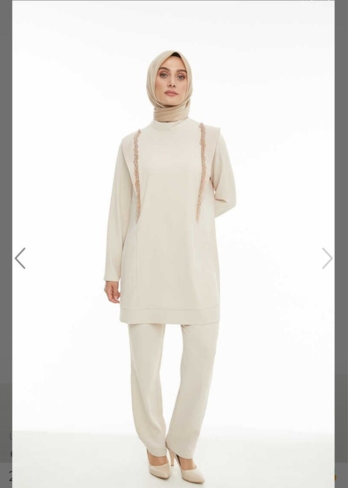 Ürün bir kez kullanıldı. Pantolon ve kol boyu kısaltıldı. İstenirse ölçüp yazabilirim. Bej rengi. Markası setrms