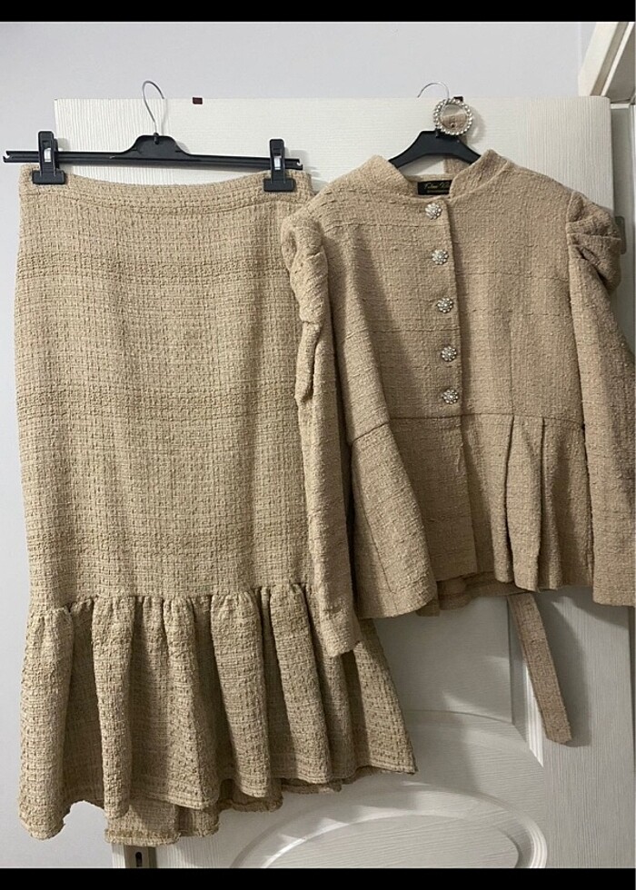 Ürünü 2 sefer kısa süreli giydim. Bedeni küçük geldiği için artık kullanmıyorum. Tivil kumaştır. İçi astarlıdır. Fatma Kılıç markasıdır. Kemeri de mevcuttur