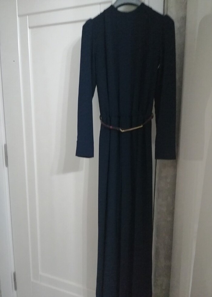 Ürünümüz pınar şems marka 38 beden lacivert tesettür tulum. Bacak kısımları oldukça bol hatları belli etmiyor gönül rahatlığıyla kullanabilirsiniz. Belinde ince bir deri kemer detayı var