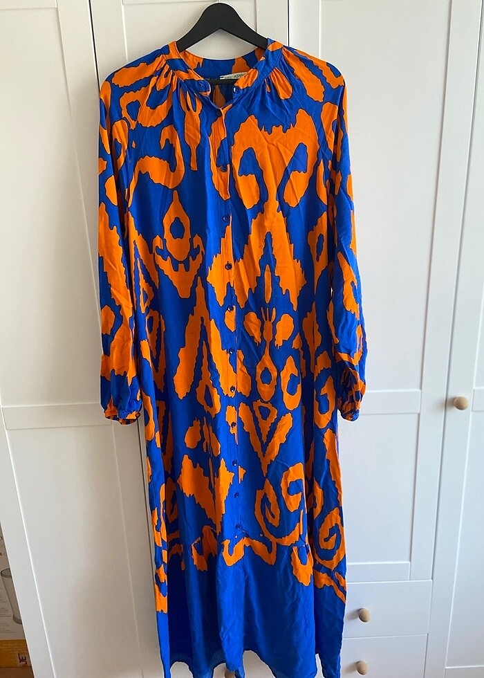 Bir kaç kez giyildi salaş olarak 38-46 bedene rahatlıkla olur iki kol arası 68 cm