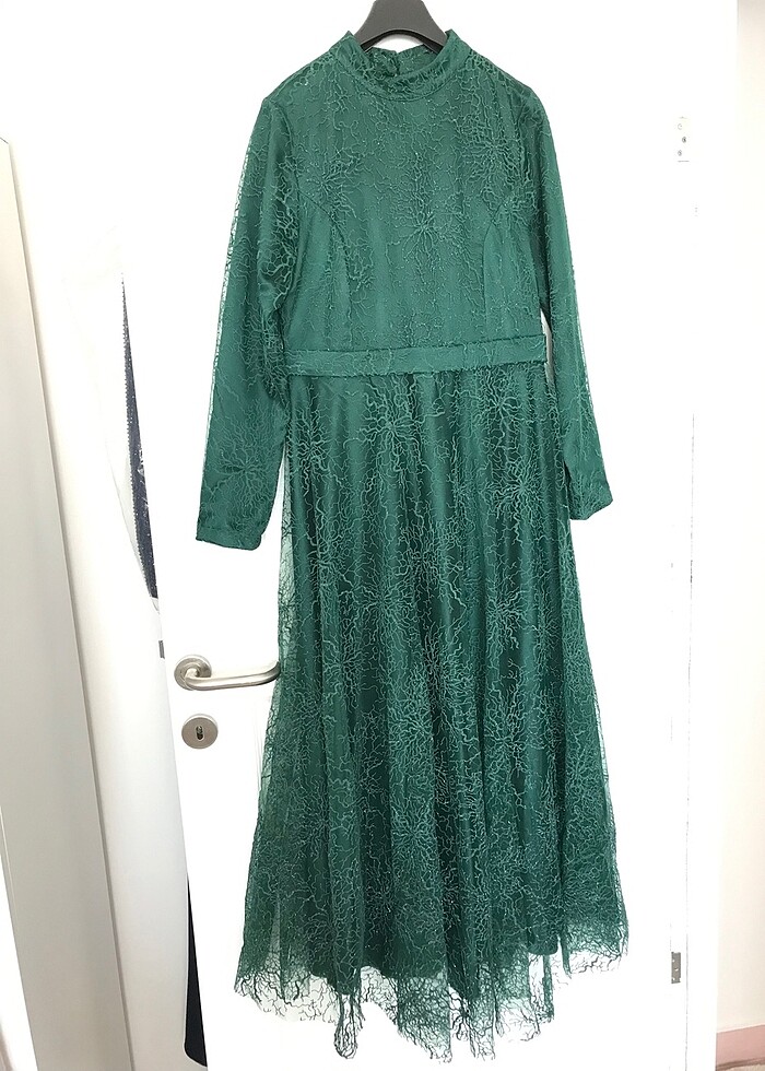 Tesettür Zümrüt yeşili 42 beden uzun abiye