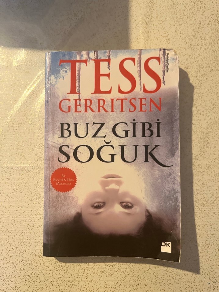 Tess Gerritsen'in "Buz Gibi Soğuk" adlı romanı, soğuk ve gizemli bir atmosfer sunuyor. Kapakta buz temalı bir yüz yer alıyor.