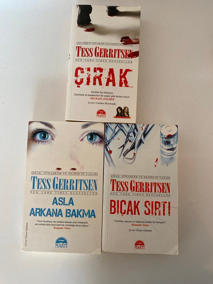Tess Gerritsen'in Çırak, Asla Arkana Bakma ve Bıçak Sırtı adlı üç gerilim romanından oluşan set.