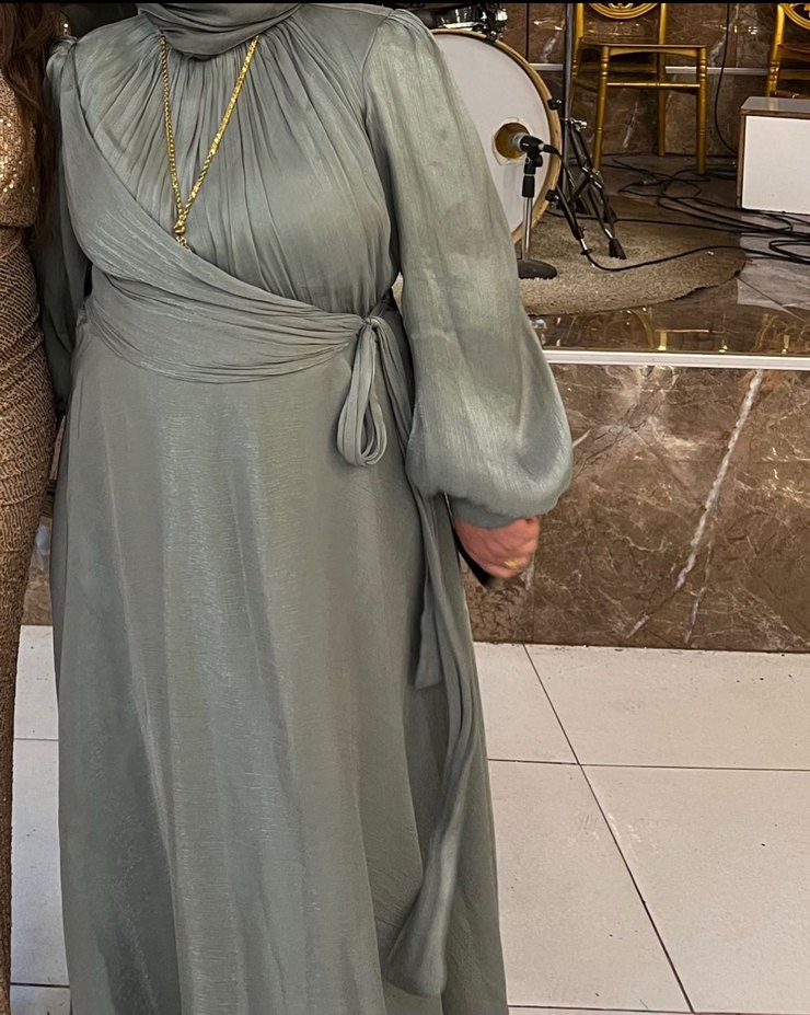 Tessetür yeşil abiye elbise