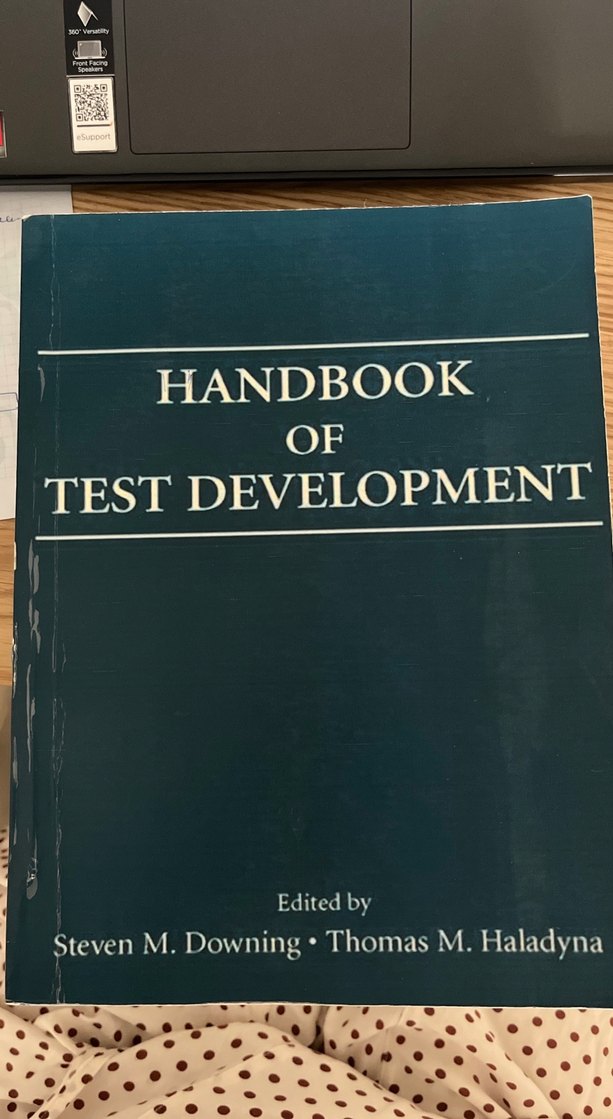 Steven M. Downing ve Thomas M. Haladyna tarafından hazırlanmış Test Geliştirme El Kitabı, etkili test oluşturma konularını içerir. Orijinalinden çoğaltılmıştır. Eksik, kusurlu sayfa bulunmamaktadır.