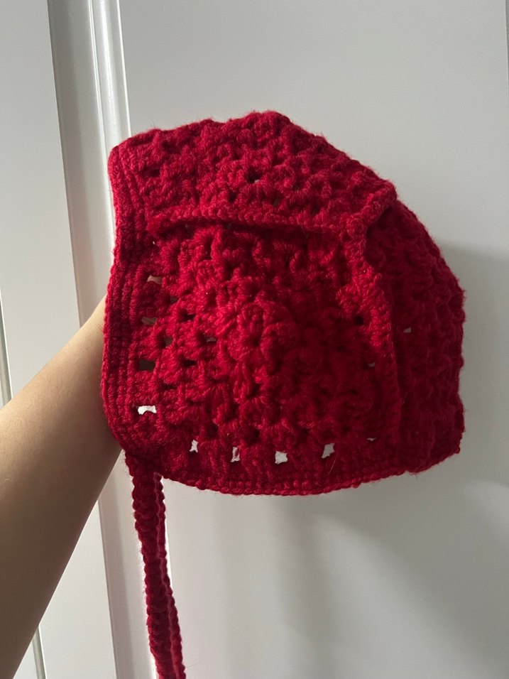 Kırmızı el örgüsü şapka