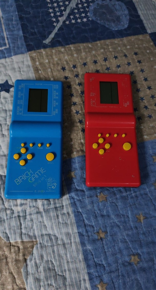 Mavi ve kırmızı renklerde, küçük ekranlı ve basit tuşlu taşınabilir oyun konsolları. Mavi olan BRICAn markalıdır.