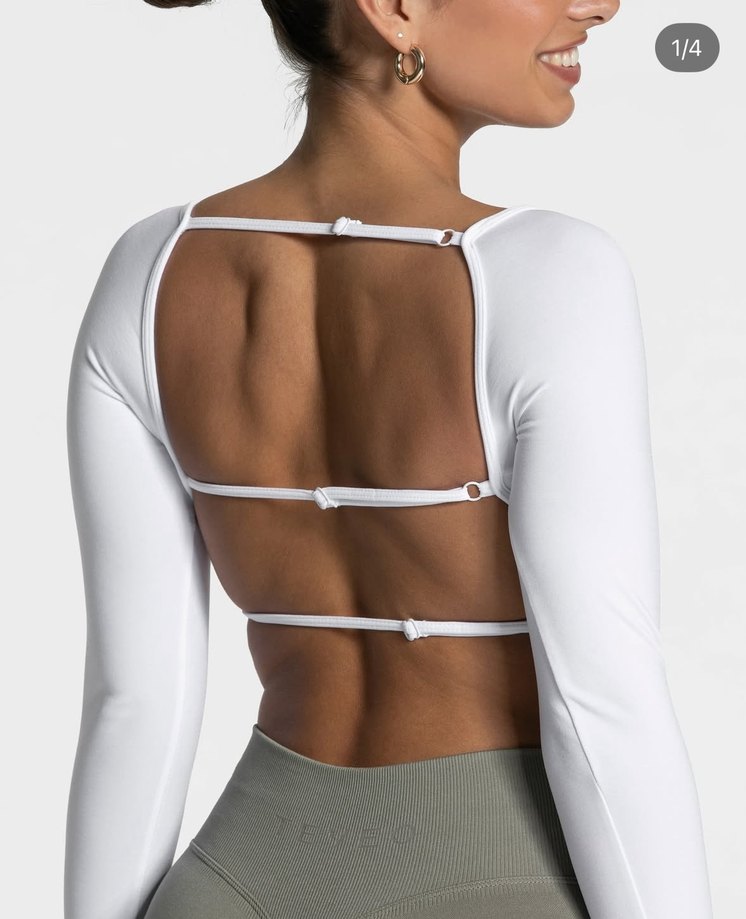 Bu beyaz spor üst, uzun kollu ve straplez yakalıdır. Elastik, ince sırt detaylarıyla modern bir görünüme sahiptir. Hafif ve rahat sentetik kumaştan üretilmiştir. ️