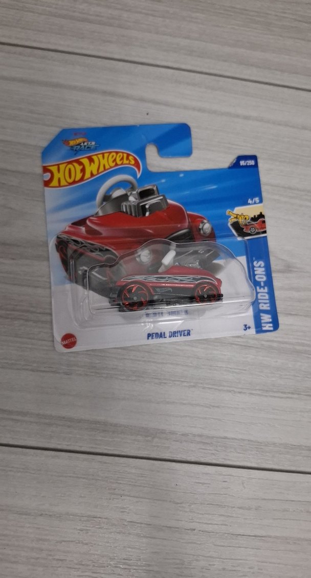 Koyu kırmızı renkte TH model Hot Wheels Pedal Driver adlı oyuncak araba, 3 yaş ve üzeri çocuklar için uygundur.