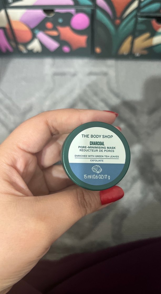 The Body Shop Charcoal Gözenek Sıkılaştırıcı Maske, yeşil çay yapraklarıyla zenginleştirilmiş, gözenekleri küçültür ve peeling yapar. 15 ml ürün içerir.