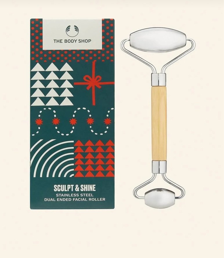 The Body Shop'un çift uçlu yüz masaj aleti, paslanmaz çelik rulolarla yüzü canlandırıp şekillendirmeye yardımcı olur. Ahşap sapı rahat kullanım sağlar. Ürün sıfırdır