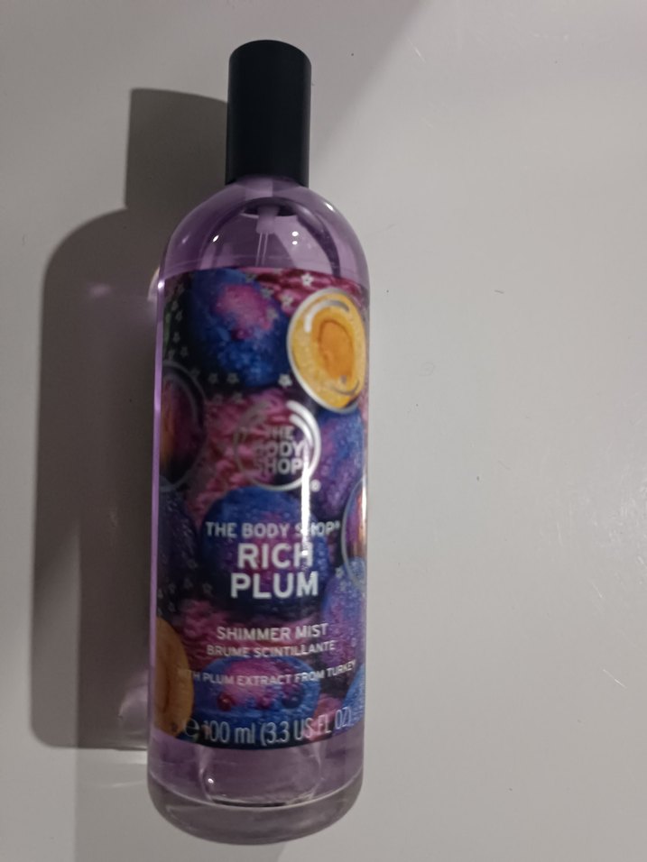 The Body Shop Rich Plum ışıltı spreyi, erik özü içerir ve meyvemsi kokusuyla hafif bir parlaklık sağlar. 100 ml sprey şişede sunulur. ✨