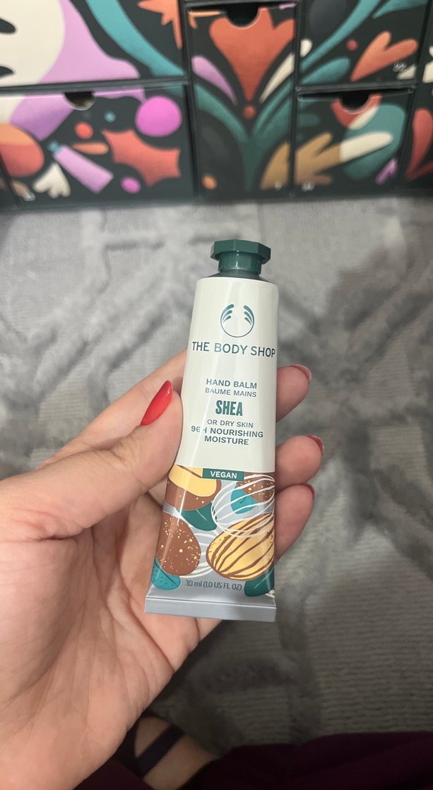 The Body Shop Shea el kremi, kuru ciltler için besleyici nem sağlar. Vegan ve 30 ml tüpte sunulur.