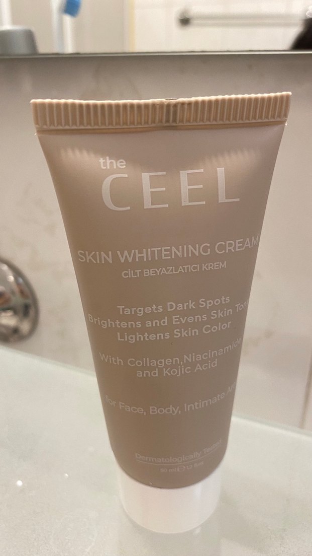 The CEEL cilt beyazlatıcı krem, koyu lekeleri hedefler, cilt tonunu eşitler ve rengini açar. Kolajen, niasinamid ve kojik asit içerir. Yüz, vücut ve hassas bölgeler için uygundur.