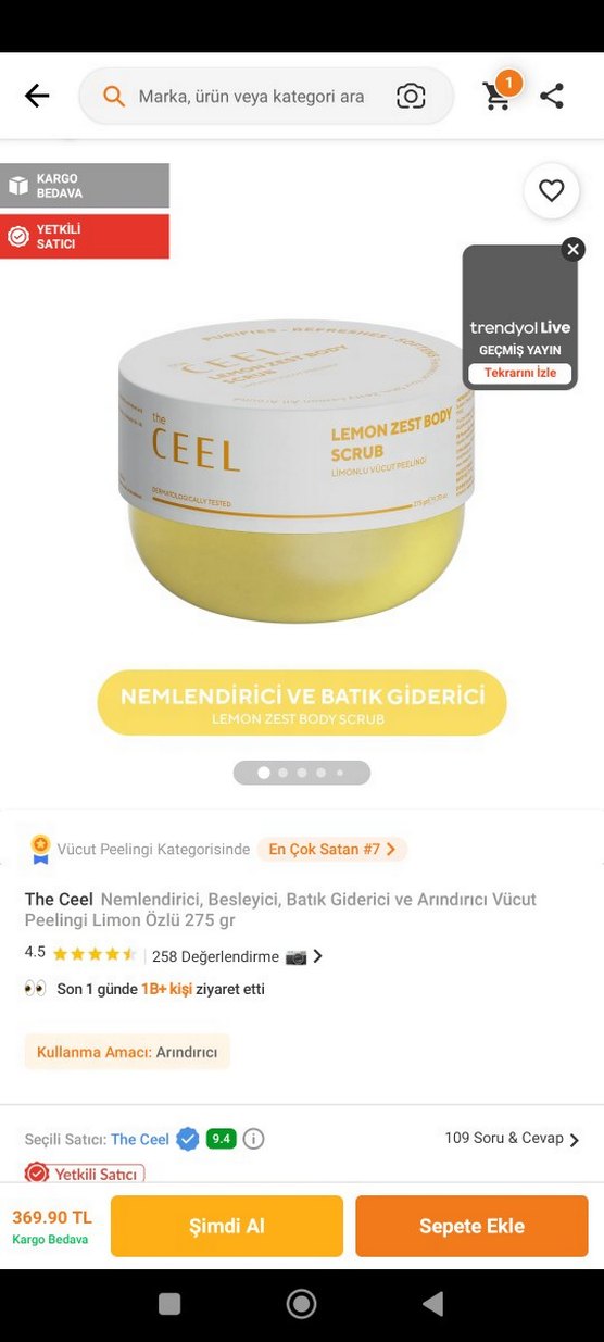 The Ceel Limon Özlü Vücut Peelingi 275 gr, nemlendirici, besleyici, batık giderici ve arındırıcı özelliklere sahiptir. Limon kokusuyla ferahlatır.