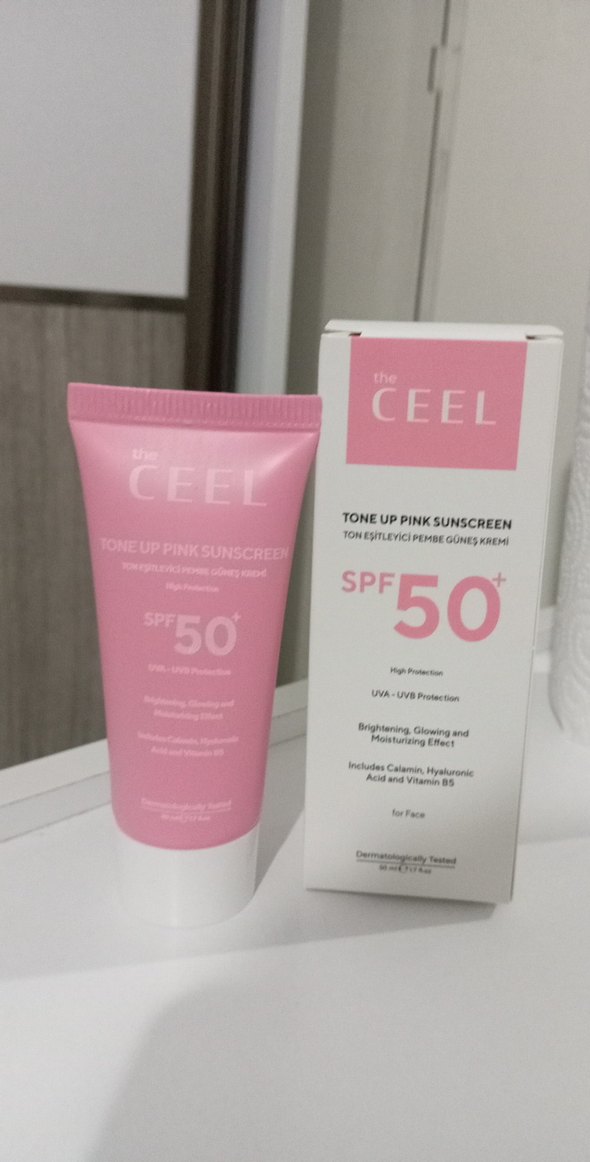 The CEEL Tone Up Pink Sunscreen, SPF 50+ koruma sağlar . ton eşitleyici güneş kremidir hiç kullanılmamıştır