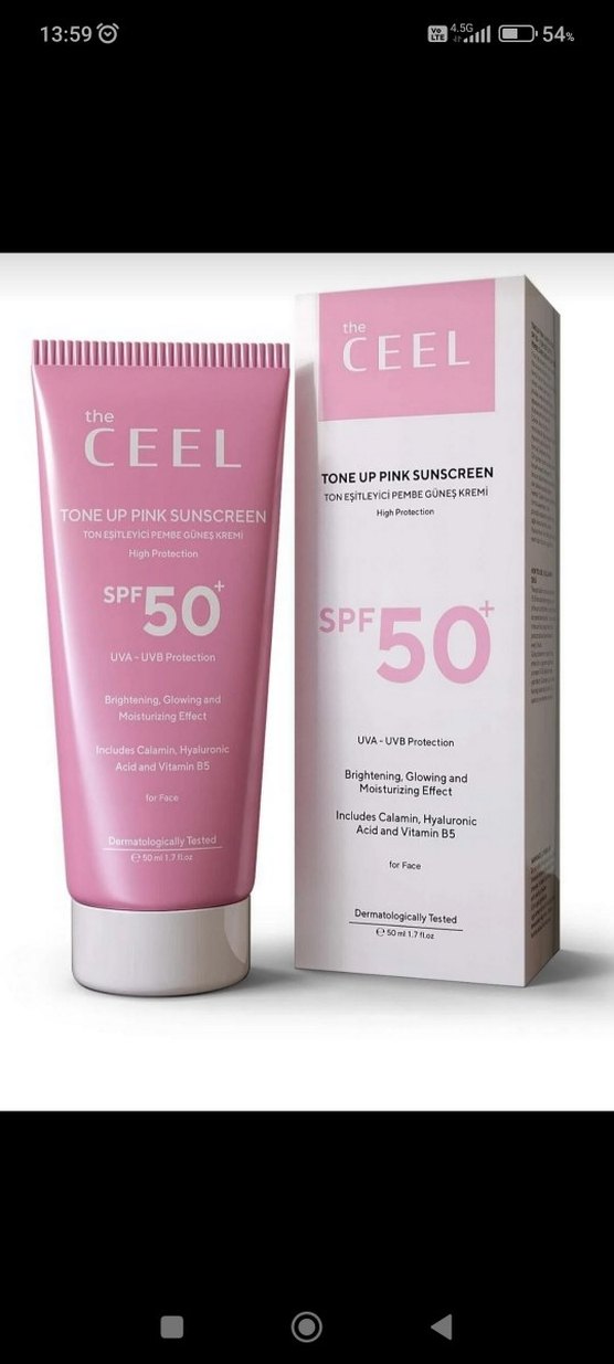 The CEEL Tonlayıcı Pembe Güneş Kremi SPF 50, UVA ve UVB koruması sağlar. Aydınlatıcı, nemlendirici etkisi vardır. İçeriğinde kalamin, hyaluronik asit ve B5 vitamini bulunur. Dermatolojik olarak test edilmiştir.