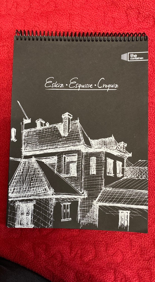 The Container markalı siyah kapaklı, beyaz mimari çizimli spiral ciltli eskiz defteri. Çizim için uygundur. ✏️Beyaz kalem kullanmanız gerekir. Sadece kapağın iç kısmında kullanım izi var. Birkaç sayfasını kopardım. Onlarda çizim vardı. Kalanı duruyor. Orijinal defterin %95’i duruyor.