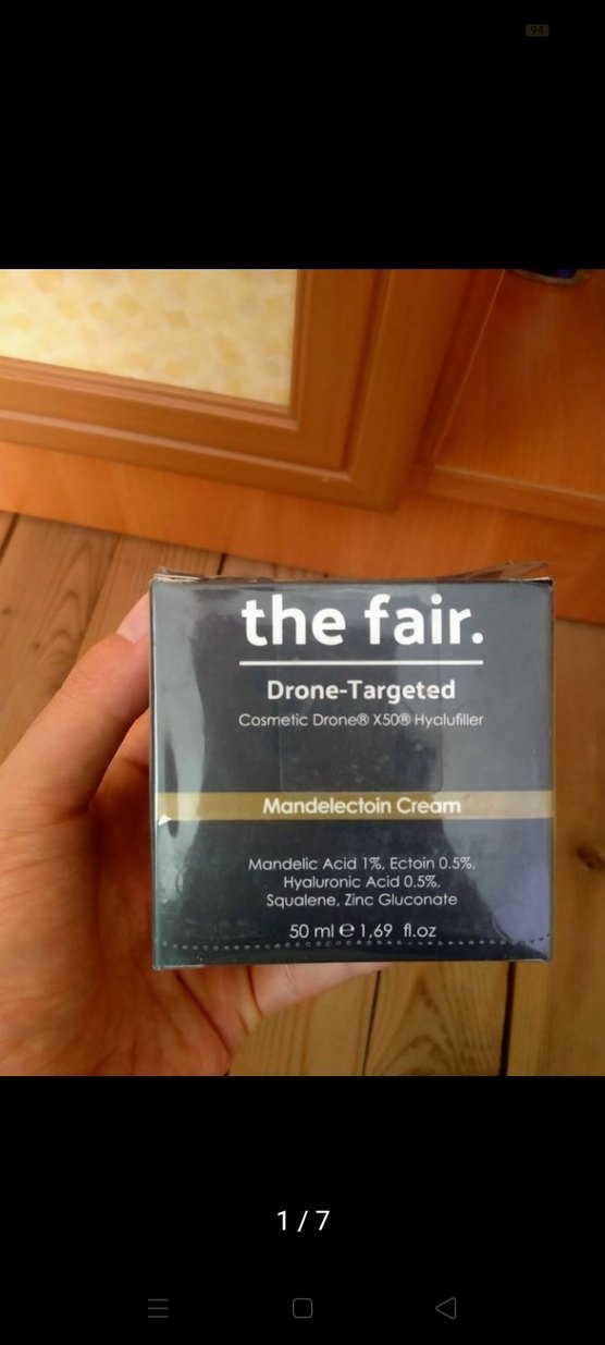 the fair. Drone-Targeted Mandelectoin Krem, %1 Mandelik Asit, %0.5 Ectoin ve %0.5 Hyaluronik Asit içerir. 50 ml parlak bej ambalajda.