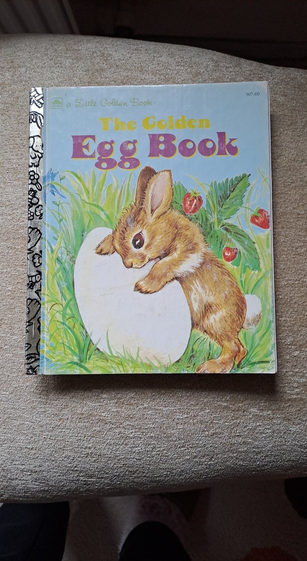 The Golden Egg Book, sevimli bir tavşan resmiyle kaplanmış, çocuklar için eğlenceli ve renkli hikayeler sunuyor. Ingilizce bir kitap.