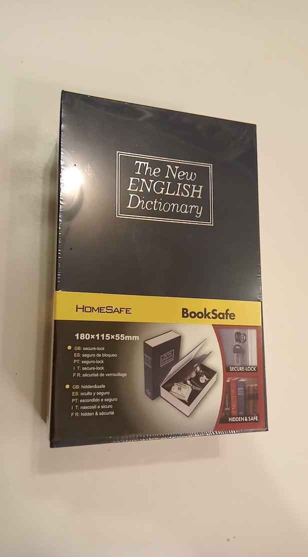 HOMESAFE markasına ait The New English Dictionary kitap kasa, 180x115x55mm ölçülerinde, gizli kilitli güvenli saklama alanı sunar.
