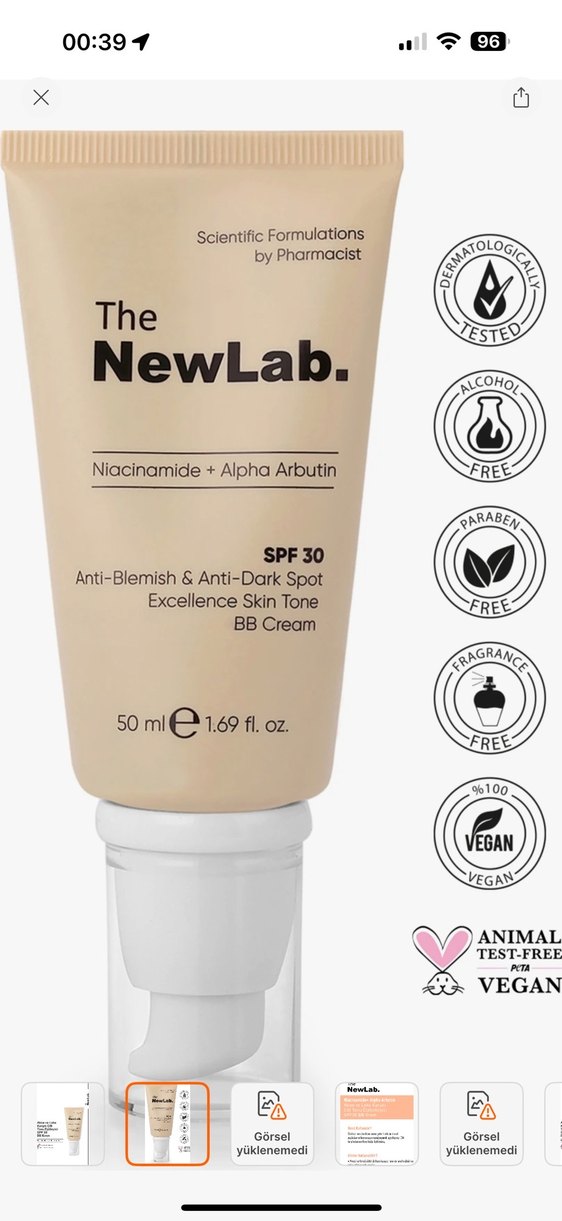 Ürünü tavsiyeyle aldım ama yanında gönderdikleri deneme ürününü kullanınca bana uygun olmadığını gördüm, hiç açmadım. Ürün koruma bandı da üzerinde duruyor. Orjinal satış fiyatı 700 küsür tl, kargo da bana ait olduğu için uygun fiyata sıfır ürün olarak satıyorum. The NewLab. SPF30 BB krem, niasinamid ve alfa arbutin ile leke karşıtı bakım sunar. Açık bej renkte, vegan ve dermatolojik olarak test edilmiştir.