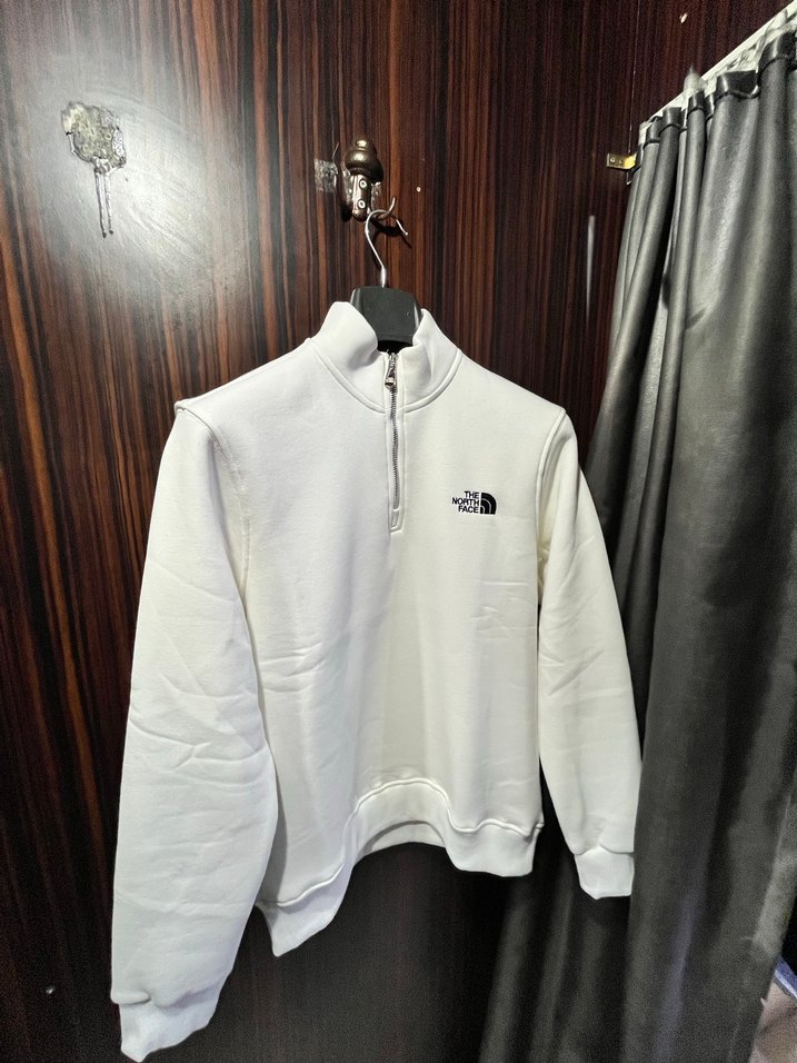 The North Face marka, beyaz renkli, yarım fermuarlı, uzun kollu ve bol kesim sweatshirt. Yumuşak dokulu ve baskılı logo detaylı, günlük kullanıma uygun rahatlık sağlar.