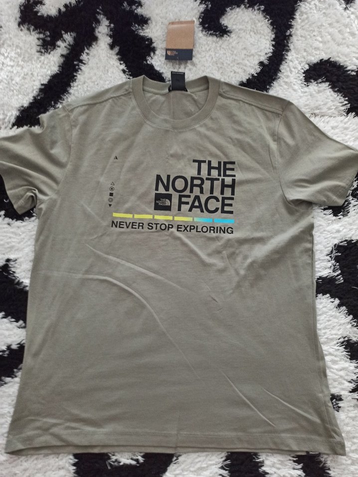 orjinal The North Face marka, gri renk, baskılı, yuvarlak yaka, kısa kollu, bol kesim, yumuşak ve sıcak kumaştan erkek tişörtü. Günlük kullanıma uygun.