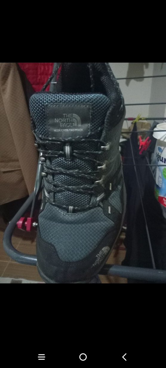 The North Face markalı koyu gri erkek outdoor spor ayakkabısı, kauçuk tabanlı ve cırt cırtlı, athleisure tarzına uygun.