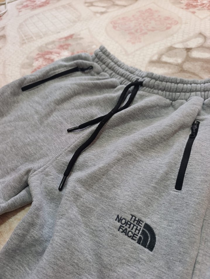 The North Face gri şort, bol kesim ve fermuarlı ceplerle. Yumuşak ve rahat kumaştan, gençler için ideal.
