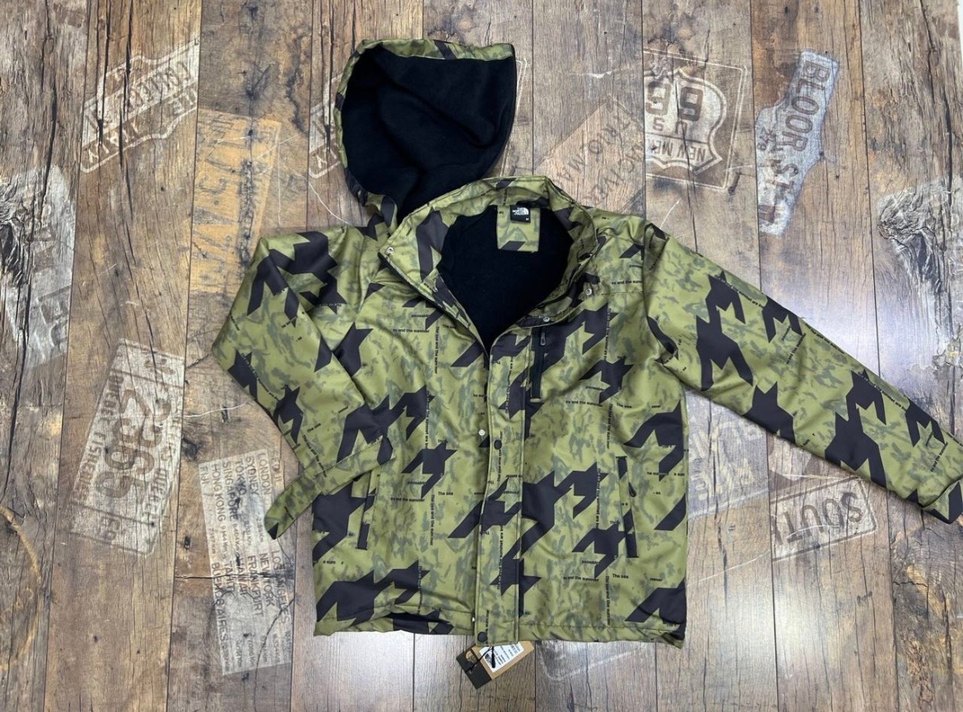 Erkek the north face kamuflaj desenli, kapüşonlu ve notched lapel yakalı, sentetik kumaştan üretilmiş bol kesim bir ceket. Velcro kapama özelliği bulunur. Ürün etiketli ve kartlı bedenler için ilan açtırınız üst kalitede mağaza ürünü