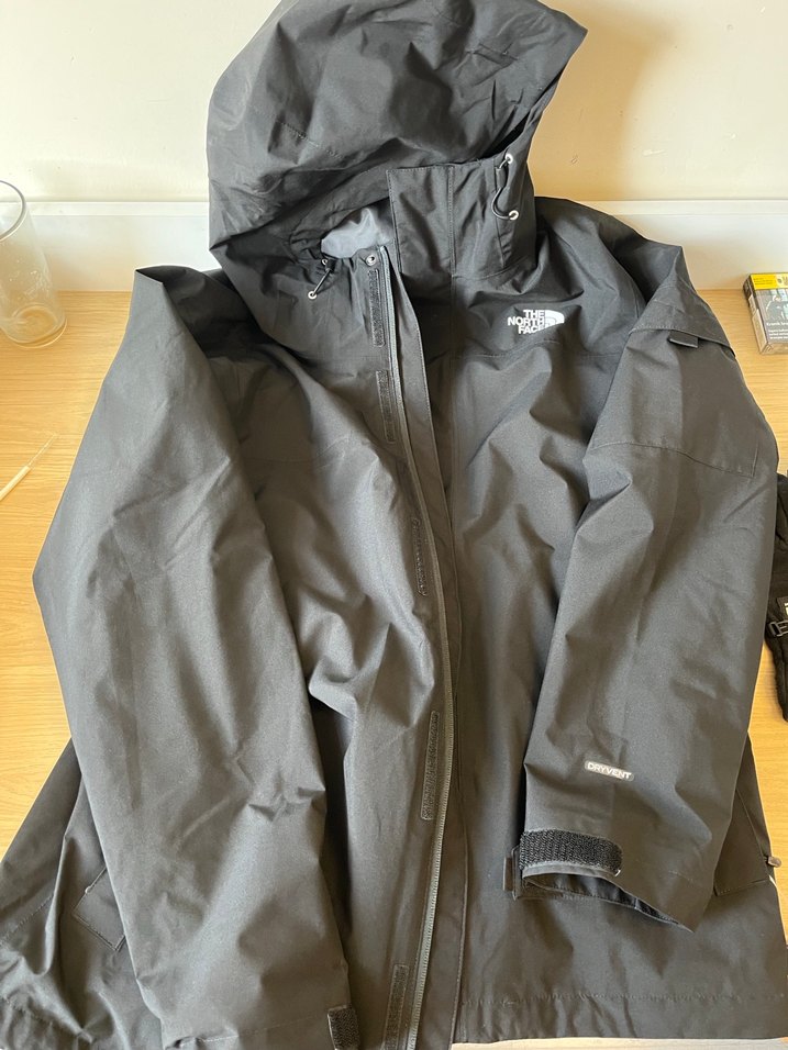 The North Face markalı, fermuarlı ön ve kapüşonlu gri kadın ceket. Rahat kesimli, normal boyda, uzun kollu, dış mekan ve sokak stiline uygun.