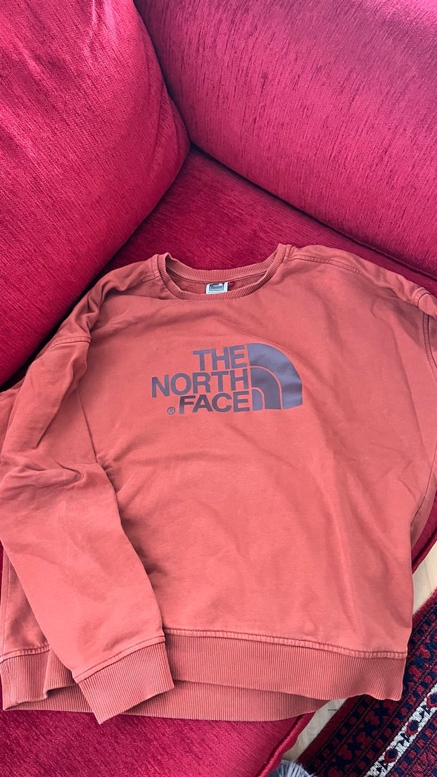 The North Face markalı koyu kiremit sweatshirt, yuvarlak yaka ve uzun kolludur. Yumuşak kumaştan üretilmiş, bol kesim ve baskılı logo ile rahat şıklık sunar. S-M-L uyumludur. Orijinaldir.