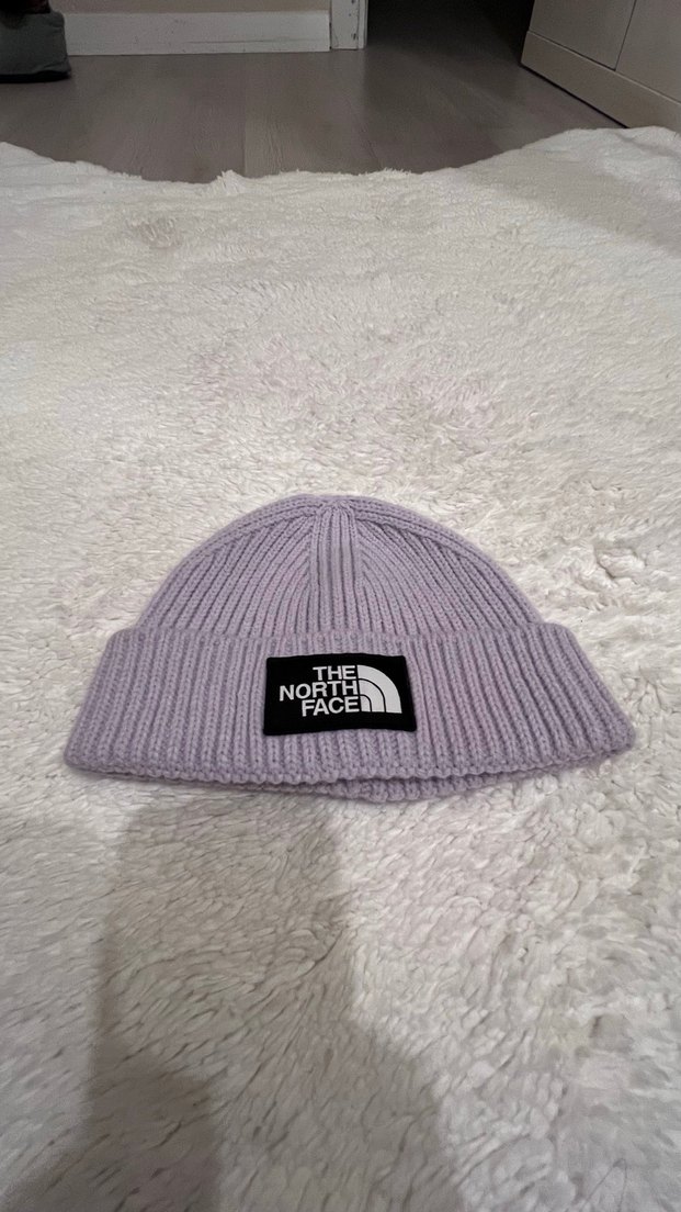 The North Face markalı, pastel mor örgü kadın bere, yumuşak fleece astarla sıcak tutar. Sokak modasına uygun, trend casual tarzda.
