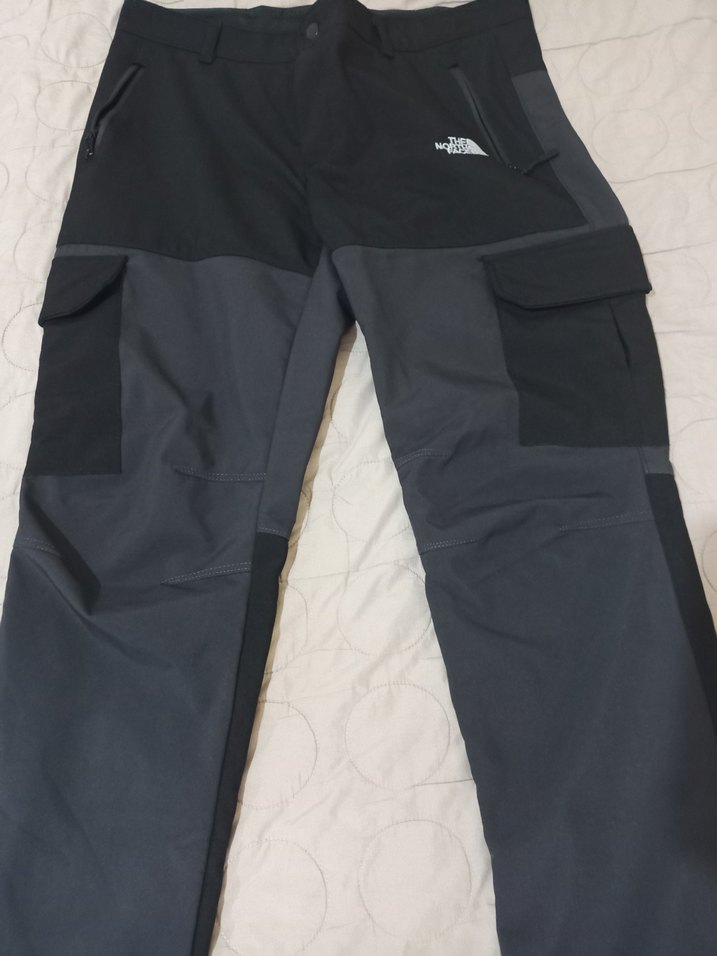 The North Face markalı, bel kemerli, siyah ve gri renklerde, fermuarlı cepli ve cep detaylı, outdoor için uygun erkek pantolonu. ️bel 50 boy 110