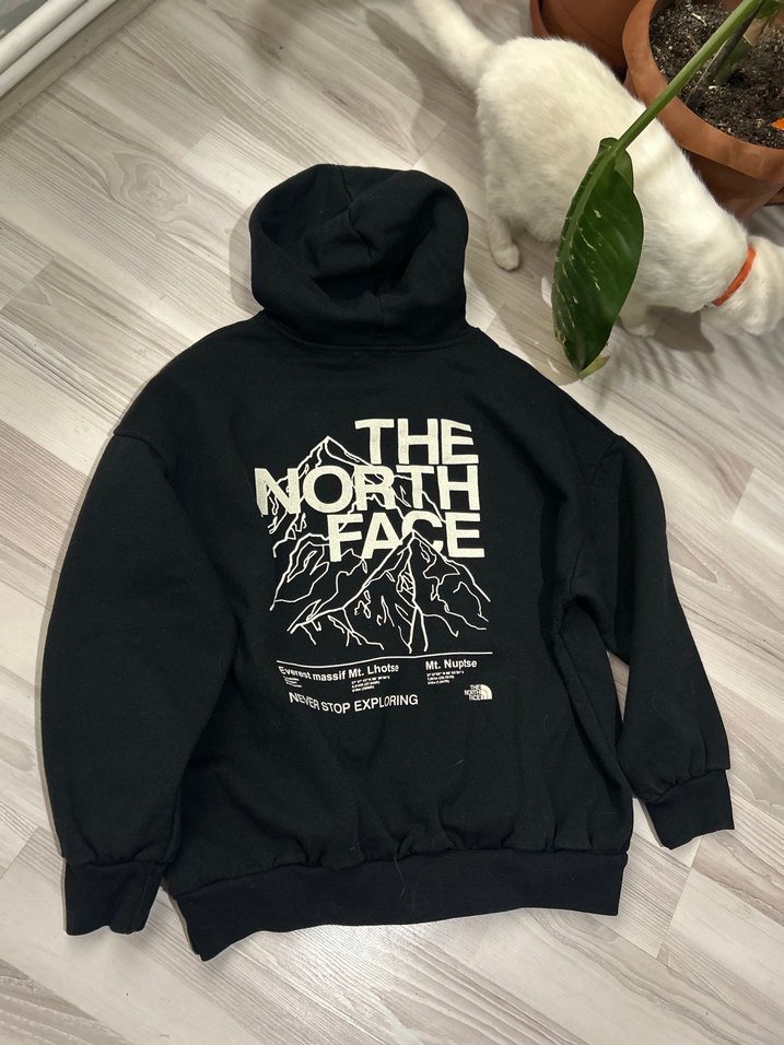 The North Face markalı siyah kapüşonlu sweatshirt,orijinal değil M/L uyumlu owersize uzun kollu ve normal boyda, bol kesimdir. Sırtında baskılı dağ deseni bulunur, rahat ve şık bir sokak stili sunar. Yumuşak ve sıcak dokulu kumaştan üretilmiştir.