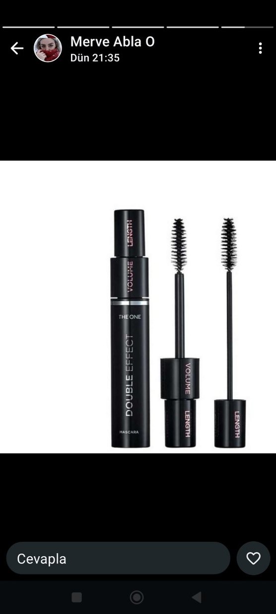 The ONE Double Effect maskara, koyu siyah renkte, hacim ve uzunluk için iki farklı fırça seçeneği sunar.